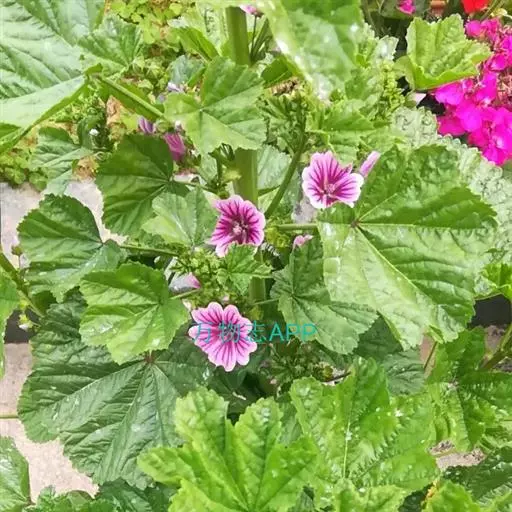 锦葵是二年生或多年生直立草本植物,高50-90厘米,分枝多,疏被粗毛。叶圆心形或肾形,具5-7圆齿状钝裂片,长5-12厘米,宽几相等,基部近心形至圆形,边缘具圆锯齿,两面均无毛或仅脉上疏被短糙伏毛;叶柄长4-8厘米,近无毛,但上面槽内被长硬毛;托叶偏斜,卵形,具锯齿,先端渐尖。