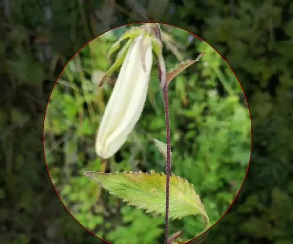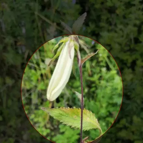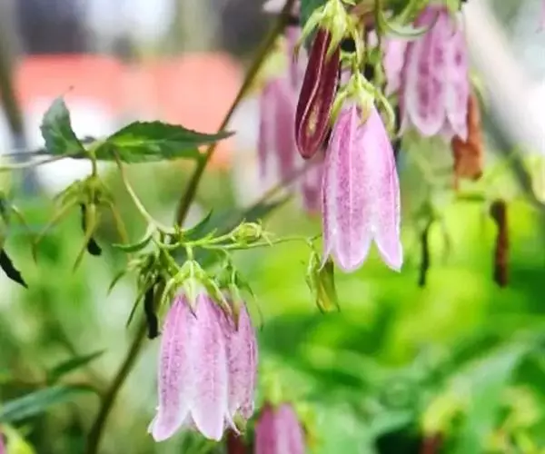 紫斑风铃草(学名:Campanula punctata Lam.):全体被刚毛,具细长而横走的根状茎。茎直立,粗壮。基生叶心状卵形;茎生叶三角状卵形至披针形。花顶生于主茎及分枝顶端,下垂;花萼裂片长三角形;花冠白色,带紫斑,筒状钟形。蒴果半球状倒锥形。种子灰褐色,矩圆状,稍扁。花期6-9月,果期9-10月。