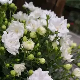 当幼苗长出5-6片真叶时可移栽上盆,用口径为9-11厘米的花盆进行移植。移植一般在阴天或下午4点以后,种植时不要太深。种后需马上浇足定根水,使小苗与基质充分接触,如阳光太强,需用遮阳网适当遮盖3-4天。风铃草早期生长较为零乱,但在后期生长中植株会自然整齐紧凑。风铃草在生长过程中可不摘心,也可作摘心处理。如需摘心,可在幼苗长至6-8厘米左右时进行,以缩短植株高度,增加侧枝及花朵数量。浇水时要做到适时适量,根据盆内基质干湿度情况和天气的变化进行。浇水时盆土要见干见湿,浇则浇透,但不要使盆内积水。阴雨天要少浇或不浇,气温高、蒸发量大时要多浇,反之则少浇。植株需肥量中等。种后每周交替施用浓度为150- 200ppm的氮肥和钾平衡肥,应避免铵和氮的含量过高。生长旺盛期每15-20天施一次稀薄腐熟饼液肥或人粪液肥。花前增施含磷、钾的复合肥,可防止花期倒伏,冬季和盛夏则应停止施肥。风铃草喜长日照,每天14小时光照可以自然开花。风铃草在阳光充足条件下,植株生长整齐,高度一致,开花整齐,花色鲜艳。半阴条件下,植株生长偏高、花序伸长、花色较淡。冬季无霜的条件下,室内或室外温度可保持在3℃-5℃ 。室外栽培需覆盖,3℃ 以下生长缓慢。