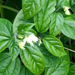 龙吐珠,唇形科灌木,幼枝四棱形,被黄褐色短绒毛,老时无毛。叶片纸质,狭卵形或卵状长圆形,顶端渐尖,…