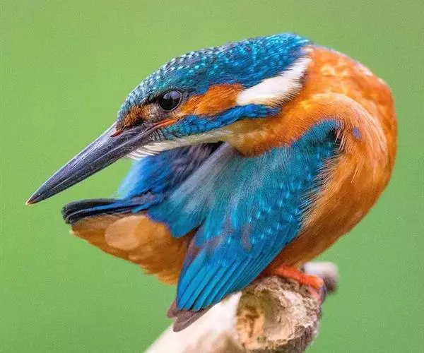 代表特种“普通翠鸟”,上体金属浅蓝绿色,体羽艳丽而具光辉,头顶布满暗蓝绿色和艳翠蓝色细斑。眼下和耳后颈侧白色,体背灰翠蓝色,肩和翅暗绿蓝色,翅上杂有翠蓝色斑。喉部白色,胸部以下呈鲜明的栗棕色。颈侧具白色点斑;下体橙棕色,颏白。橘黄色条带横贯眼部及耳羽为本种区别于蓝耳翠鸟及斑头大翠鸟的识别特征。雄鸟上嘴黑色,下嘴红色。虹膜-褐色;嘴-黑色(雄鸟),下颚橘黄色(雌鸟);脚-红色。