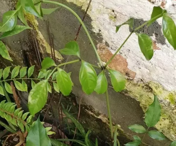 三回羽状复叶互生,小叶对生,纸质,椭圆形,无毛,全缘。多数小伞形花序排成大圆锥花序;花瓣5,镊合状排列;萼近全缘;雄蕊5;子房下位,花柱离生,2室,每室有胚珠1颗,果球形、卵形或扁球形。以根、树皮入药。全年可采,晒干。