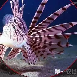 斑鳍蓑鲉是鲉科,蓑鲉属硬骨鱼。体长25-40厘米,体表黄色,布有红色至棕色条纹。背部有毒棘,胸鳍羽…