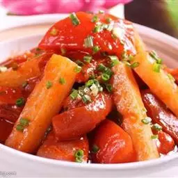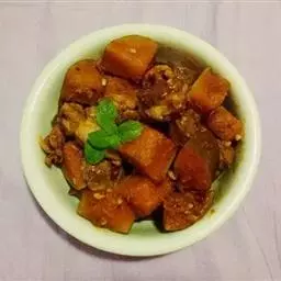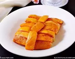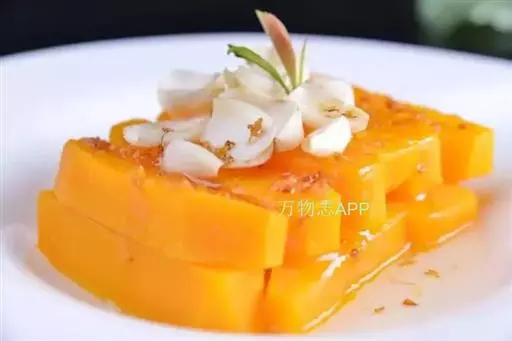 蜜汁南瓜为延安的一道特色小吃,使用陕北优质八棱南瓜为最佳,做法简单,口感绵软,香甜怡人。而且具有解毒,防治糖尿病、降低血糖,保护胃粘膜、帮助消化,消除致癌物质,防治妊娠水肿和高血压,促进生长发育等功效。