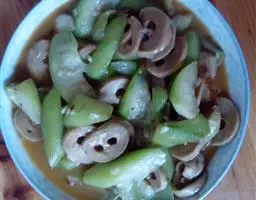 2、锅内放油,加清水、冰糖、少许盐,再放入南瓜翻炒即可。