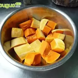 原料:南瓜、(可以配蜜枣、白果、枸杞)