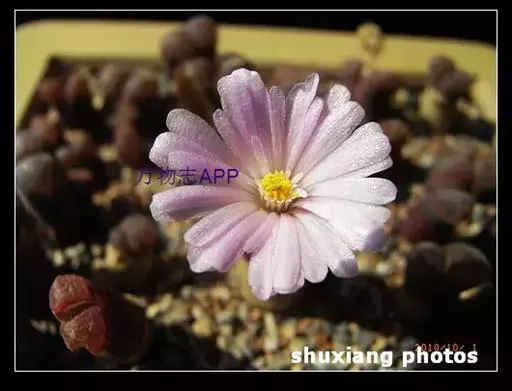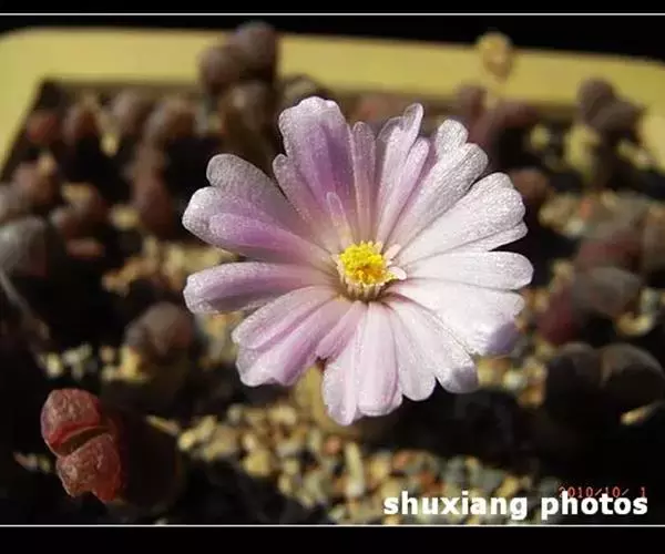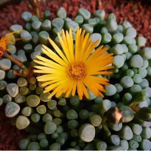 生石花,番杏科生石花属多年生肉质草本植物。植株几乎无茎;花朵较大,颜色艳丽,呈多边形,…