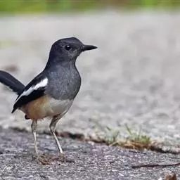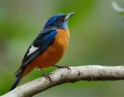 蓝额红尾鸲(学名:Phoenicurus frontalis)体长14-16厘米。雄鸟夏羽前额和一短眉纹辉蓝色,头顶、头侧、后颈、颈侧、背、肩、两翅小覆羽和中覆羽以及颏、喉和上胸概为黑色具蓝色金属光泽。主要以甲虫、蝗虫、毛虫、蚂蚁、鳞翅目幼虫等昆虫为食,也吃少量植物果实与种子。繁殖期5月末至8月初。