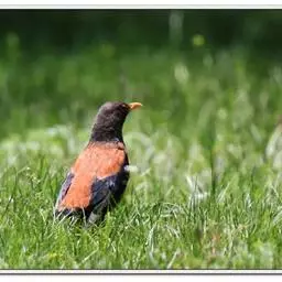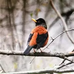 灰头鸫:中型鸟类,体长23-27厘米。整个头、颈和上胸褐灰色,两翅和尾黑色,上、下体羽栗棕色。…