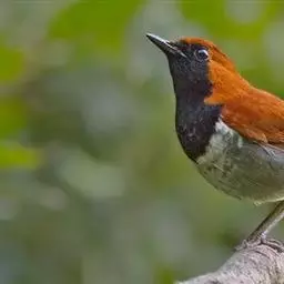 琉球歌鸲是鹟科、歌鸲属小型鸟类,体长约14厘米。雄鸟上体暗橙色,颏、喉、胸黑色。其余下体白色。…