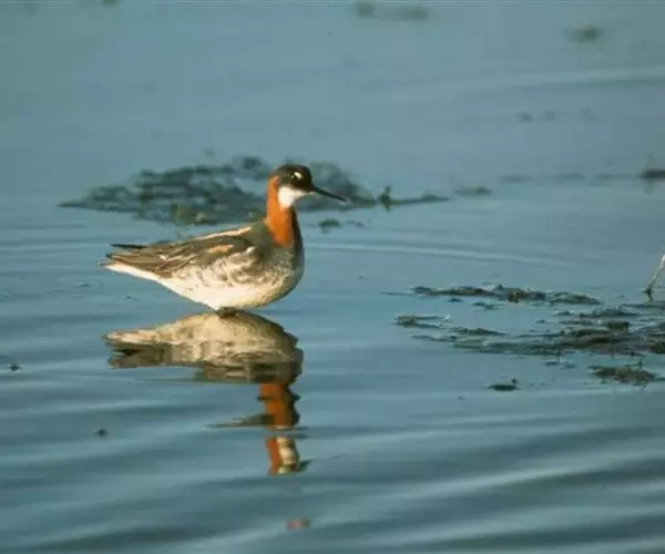 瓣蹼鷸 (phalarope )鸻形目(Charadriiformes)瓣蹼鷸科(Phalaropodidae)3种滨鸟。雌鸟的体型比雄鸟大,色也更靓丽,又能进行占区争斗和作求偶表态。雄鸟则负担孵卵任务。入秋雌鸟先离开繁殖地后,随后雄鸟带领幼鸟向南迁飞。夏季瓣蹼鷸具红色和柔和的灰色斑点;冬季为灰色和白色。