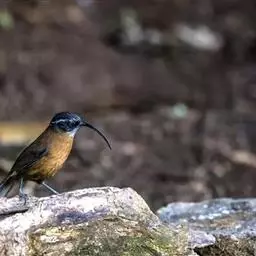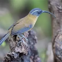 剑嘴鹛:中型鸟类,体长21-22厘米。嘴特别细长而向下弯曲,头顶和头侧烟灰色具长而窄的白色眉纹,…