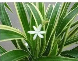 金边吊兰百合科、吊兰属植物。多年生常绿草本植物。叶片呈宽线形,嫩绿色,叶边缘金黄色,着生于短茎上,…