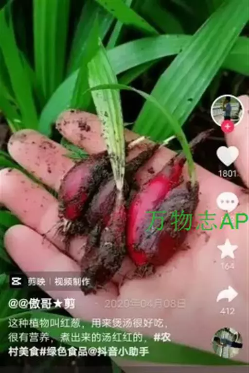 红葱(Eleutherine plicata Herb.),别名小红蒜,鳞茎卵圆形,鳞片肥厚,紫红色,径约2.5厘米。根柔嫩,黄褐色。