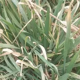 症状。主要危害叶片。发病初期叶片上出现水渍状病斑,然后从上而下枯黄,田间现一片“干尾”;天所潮湿时患部可长出稀疏白霉,天气干燥时白霉消失。常常在在高温高湿的“回南天”或雾天迅速发生和流行。