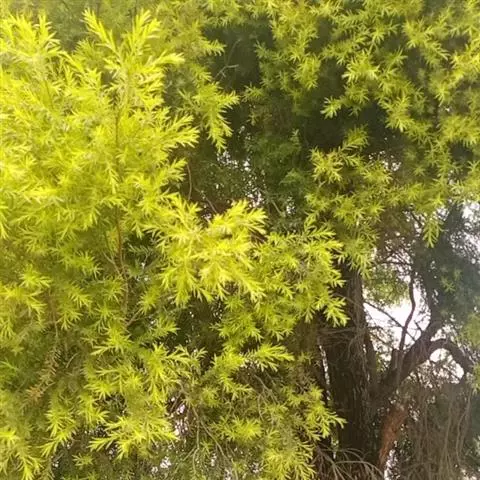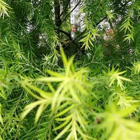 千层金(学名:Melaleuca bracteata F. Muell. )是桃金娘科白千层属植物,常绿乔木。树高可达6-8米,冠幅锥形。主干直立,枝条密集、细长、柔软,嫩枝红色。叶片金黄色,披针形,长2-2.5米,宽0.2厘米左右,具芳香味。穗状花序,花瓣绿白色。果实为蒴果。 [1-2]
