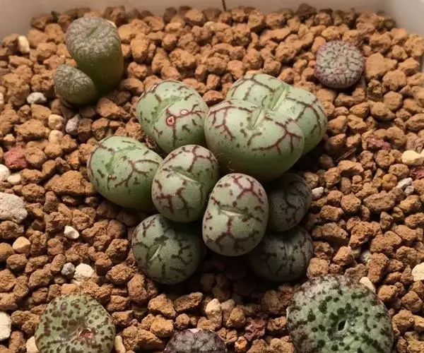 清姬是肉锥属里的中小型品种,植株表面纹路清晰,椭圆。植株非常肉质,老株常密集成丛。叶浅绿,顶端网路绿色。光照充足的时候纹路会变红色至紫红色。