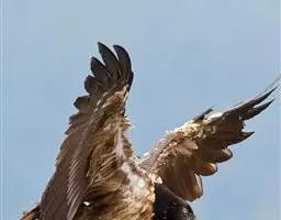 白肩雕:又名御雕,是大型猛禽。体长73-84厘米。体羽黑褐色,头和颈较淡,肩部有明显的白斑,在黑褐…