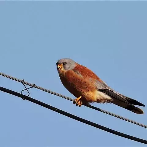 黄爪隼:是隼科、隼属鸟类。体长约305毫米,雄鸟头、颈和翅上覆羽铅灰色;嘴蓝灰色;跗跖和趾淡黄色,…