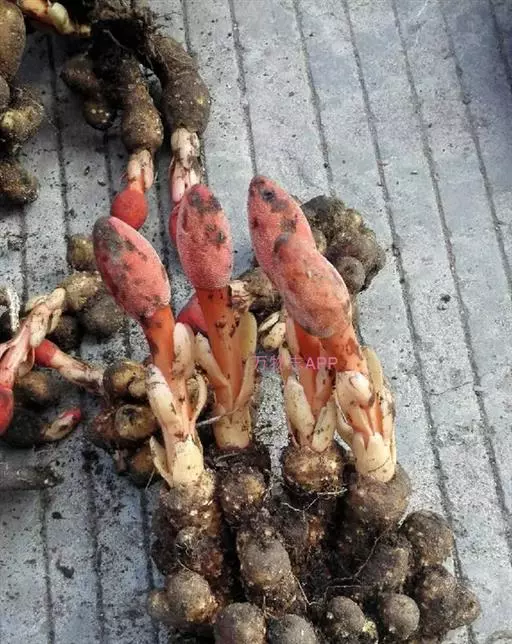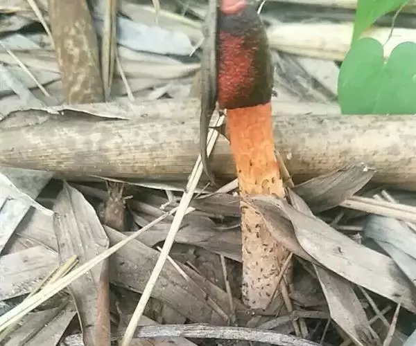 蛇头菌学名为“Mutinus Caninus”,可以称得上是最丑陋的菌类。蛇头菌菌柄呈圆柱形,菌盖呈鲜红色,菌盖顶端长有恶臭气味的粘稠状孢子。