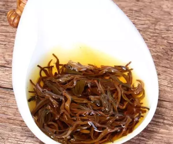 金骏眉红茶茶芽 金骏眉 含量高,小叶种红茶条形细紧,大叶种红茶肥壮紧实,色泽乌黑有油光,茶条上金色毫毛较多,香气甜香浓郁,滋味甜醇鲜爽,高档金骏眉红茶冲泡后汤色红艳,碗壁与茶汤接触处有一圈金黄色的光圈,俗称“金圈”。