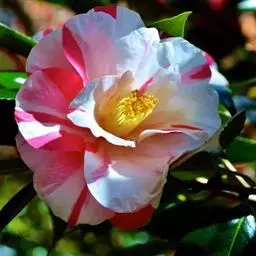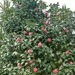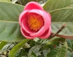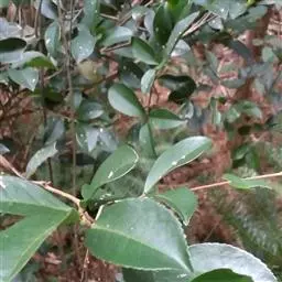 滇山茶:灌木至小乔木,有时高达15米,嫩枝无毛。叶阔椭圆形,上面干后深绿色,发亮,下面深褐色,无毛,…
