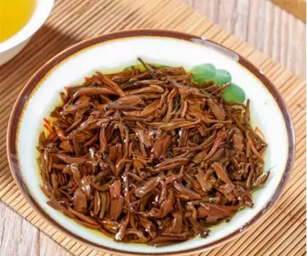 此茶冲泡后其汤色呈琥珀金骏眉色,具淡而甜的蜜香,品之甘甜润滑,叶底芽头挺拔、呈鲜活的古铜色。
