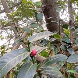 红皮糙果茶是山茶科,山茶属小乔木,高可达7米,树皮红色,叶硬革质,叶片倒卵状椭圆形至椭圆形,先端短…