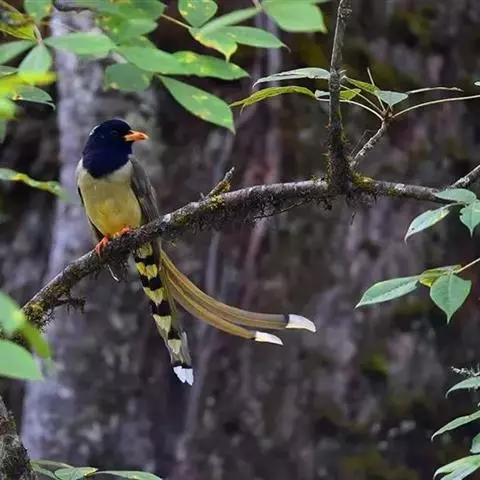 黄嘴蓝鹊是鸦科、蓝鹊属的鸟类。大型鸦类,体长45-69厘米。尾特长,呈凸状,蓝色,…