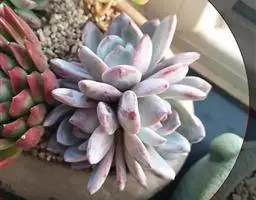 大和锦是景天科拟石莲花属的多肉植物。肉质叶排成紧密的莲座状,广卵形至散三角卵形,背面突起呈龙骨状,…