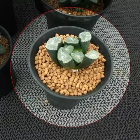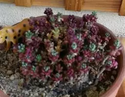 叶子表面宽厚,富肉质感且带有磨纱质感,看像石头质地;开红色小花,生于植株顶部,倒伞形密生,形状像花…