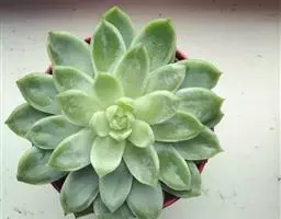 吉娃莲,景天科拟石莲花属,别名:吉娃娃,吉娃莲,植株小型,无茎的莲座叶盘非常紧凑。卵形叶较厚,带小尖,…