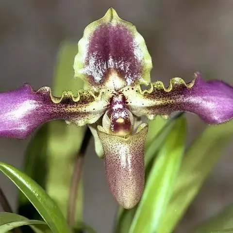 紫毛兜兰 Stein)是兰科兜兰属地生或附生植物。叶深黄绿色,…
