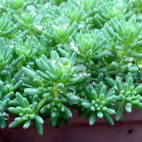 玉缀,别名翡翠景天景天科景天属常绿或半常绿多肉植物。植物匍匐下垂,翠绿色。叶小,多汁,纺锤形,、密…