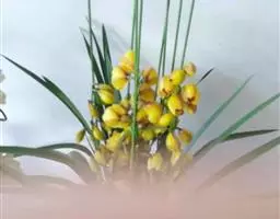 建兰四大铭品之一。夏皇叶形为长鱼肚型,叶尾稍钝,叶面波浪纹稍重!叶片厚实!花为黄白色,稍偏黄,两捧…
