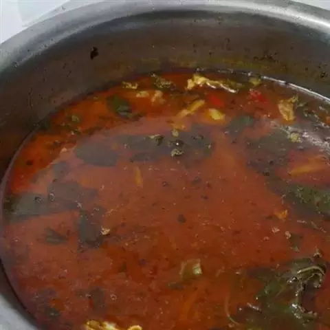 5、火锅底料用水化开,放入锅内烧沸熬味;