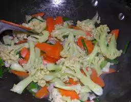 15. 把毛血旺盛出,锅中加入香油烧热。