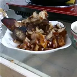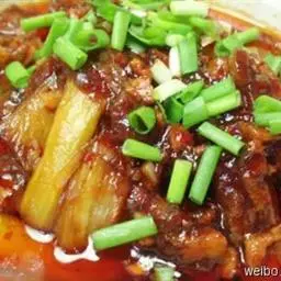 辅料:重庆火锅底料(片状的半掌大小)1块,郫县豆瓣2汤匙,干小红辣椒10个,生姜一块,盐1/4茶匙,黄酒1汤匙,大葱适量,小香葱适量,清鸡汤适量或清水,姜片少许