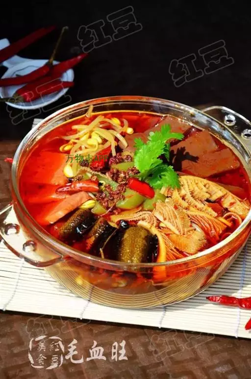 观:打眼望去,一片“红海洋”。正宗的毛血旺,盆内的红油不会少于一半,而且油滑透亮,不浑不浊。其汤汁红亮、麻辣鲜香、味浓味厚的特点。油少不仅影响味道和口感,也不利于保温。在顺序上,建议先吃肉类后吃白菜、粉丝等物。因为菜叶易“挂油”,吃起来更辣。循序渐进,先从不太辣的吃起。