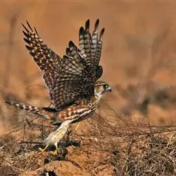 黄爪隼:是隼科、隼属鸟类。体长约305毫米,雄鸟头、颈和翅上覆羽铅灰色;嘴蓝灰色;跗跖和趾淡黄色,…