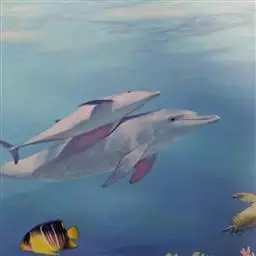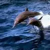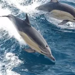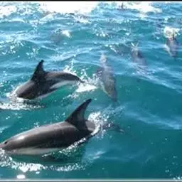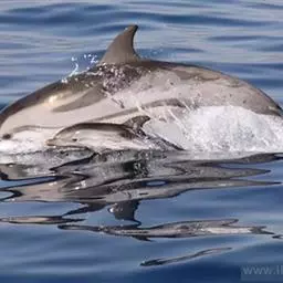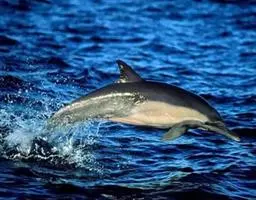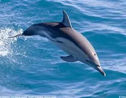 真海豚,身体细而流线型。体色十分复杂而独特,通常十字交叉型,黄褐色在前灰色在后,背面黑色向下延伸,…