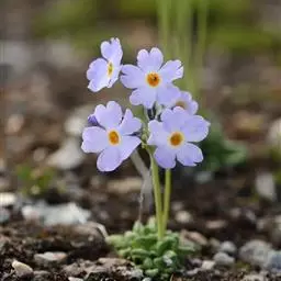 西藏报春(学名:Primula tibetica Watt.)是报春花科报春花属多年生小草本植物,全株无粉。根状茎短,叶丛高可达5厘米,叶片卵形、椭圆形或匙形,先端钝或圆形,基部楔形或近圆形,两面秃净,叶柄纤细,具狭翅,花葶自叶丛抽出,有时藏于叶丛中,花生于花葶端;苞片狭矩圆形至披针形,花梗纤细,花萼狭钟状,花冠粉红色或紫红色,冠筒口周围黄色,裂片阔倒卵形,先蒴果筒状,稍长于花萼。