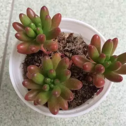 秋冬季节气温降低,光照增强,肉质叶片逐渐变为红色,因此栽培过程中人为降温可提高观赏价值。冬季室温不宜低于5℃。虹之玉喜光,整个生长期应使之充分见光。但夏季曝晒会造成叶片日灼,可适当遮光或半日晒(和前面生长习性的描述有矛盾,关于遮光),中午应避免烈日直射。虹之玉生长缓慢,耐干旱,因此不宜大肥大水,应见干浇水且浇透,而冬季室温较低时则要减少浇水量和次数。一般一个月施一次有机液肥。夏季注意保持通风良好。耳坠草生长较快,一般栽培3年后株形开始散乱,因此应提前进行修剪。