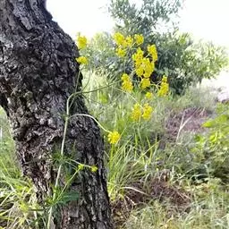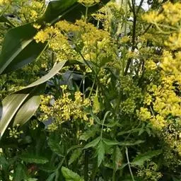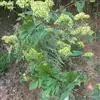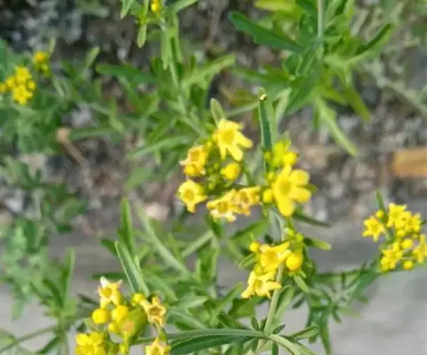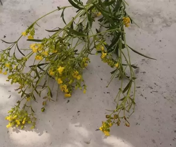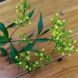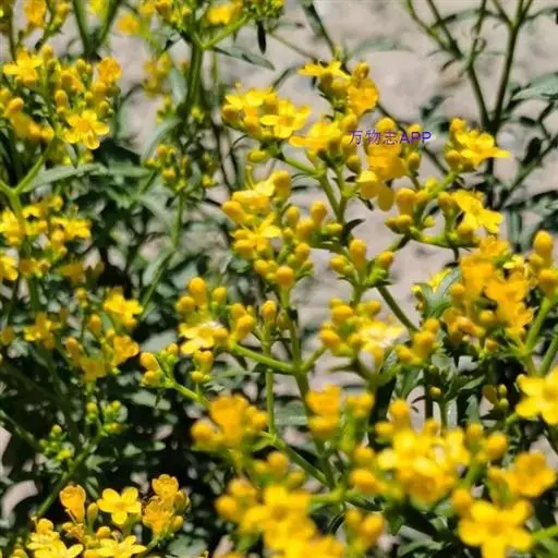 糙叶败酱( Patrinia rupestris Juss.subsp.scabra H.J.Wang),败酱科植物,多年生草本,茎丛生,茎上部多分枝,叶对生,裂片倒披针形、狭披针形或长圆形,聚伞花序顶生,呈伞房状排列,花小,黄色,花冠合瓣,果实翅状,卵形或近圆形,种子位于中央。