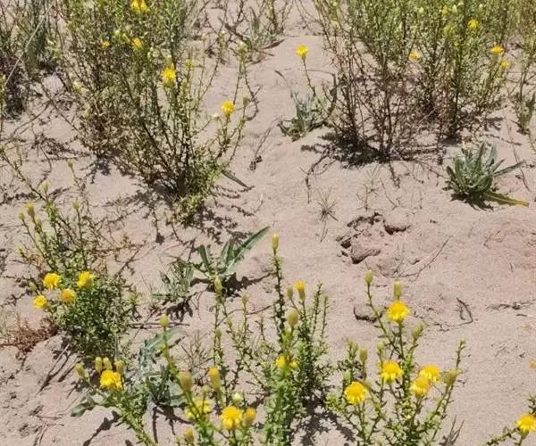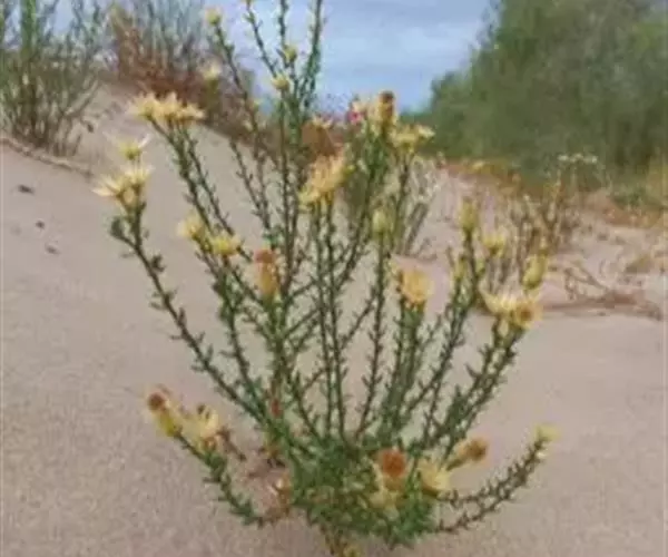 蓼子朴,为旋覆花属多年生草本植物, 蓼子朴具有较强的繁殖力,它的横走根状茎在沙土中蜿蜒,可以进行营养繁殖,瘦果多数,小而具冠毛,随风飘荡,极易传播,遇条件适合,便可发芽,长成新的植株。