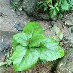 灌木,高1-4米;小枝四棱形,干后有较深的沟槽,老枝近于无毛或被短柔毛,同对叶柄之间密被长柔毛,枝干后不中空。叶片圆心形,长8-35厘米,宽6-27厘米,顶端尖或渐尖,基部心形,边缘有疏短尖齿,表面疏生伏毛,脉基具较密的锈褐色短柔毛,背面密具锈黄色盾形腺体,脉上有疏短柔毛;叶柄长0.5-15厘米,少可达27厘米,具较密的黄褐色短柔毛。