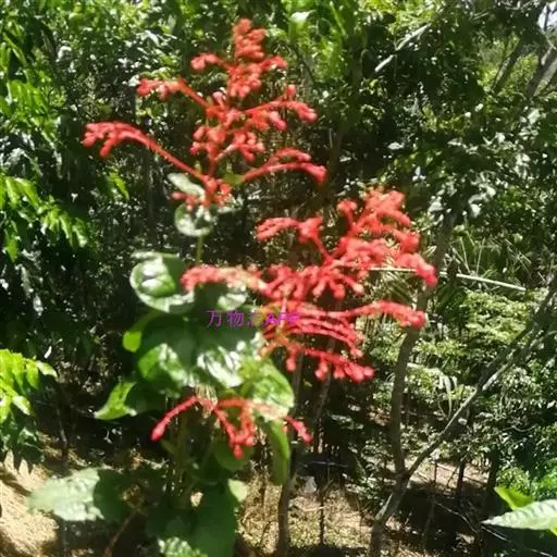 烟火树 Merr.)是唇形科、大青属常绿灌木或小乔木,株高可达4米。幼枝方形,墨绿色。叶对生,…