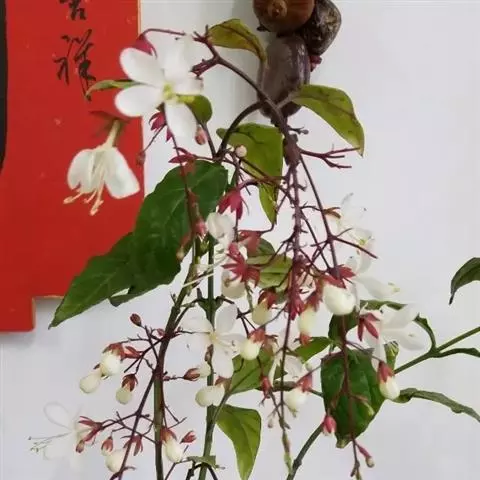 红萼龙吐珠马鞭草科大青属常绿木质藤本。叶对生,纸质,具柄,卵状椭圆形,全缘,先端渐尖,基部近圆形。…