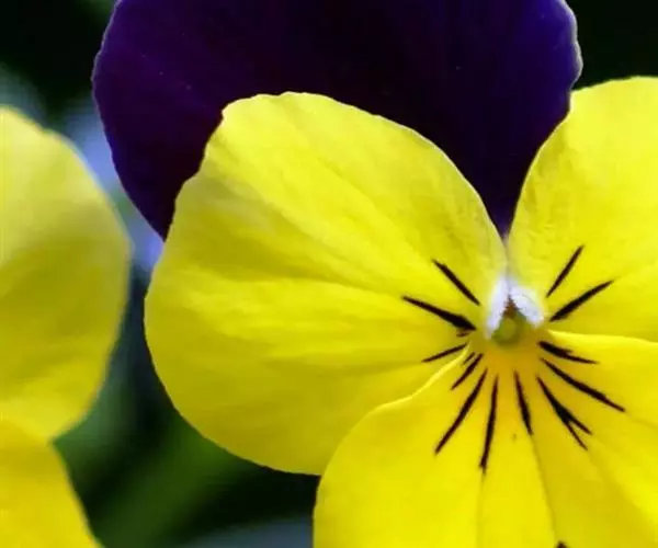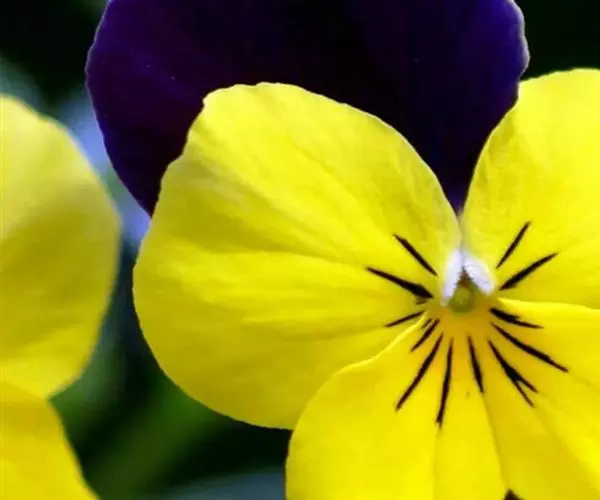 花黄色,由上部叶腋抽出,具长梗;花梗较叶片为长,长约1.5-3厘米,近顶部(紧靠花下)有2枚线形小苞片;萼片线形,长约5毫米,先端尖,无毛或被疏柔毛,基部附属物很短,呈截形;上方花瓣倒卵形,长约1.2厘米,侧方花瓣长约0.9-1厘米,下方花瓣宽倒卵形,长8-9毫米,宽约5毫米,基部有紫色条纹;距极短,长仅0.5-1毫米,末端钝圆;子房卵形,光滑无毛;花柱下部细,上部增粗,柱头2裂,裂片直伸,宽卵形,顶端圆。