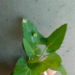 基生叶通常1枚或缺,叶片厚纸质,卵形,长3-4厘米,宽约3厘米,先端渐尖,基部心形,具波状锯齿缘,齿端具腺点,上面绿色,无毛,下面苍白色,基部疏生长柔毛,具长达7厘米的叶柄;茎生叶叶片较基生叶小,宽卵形或三角状卵形,基部浅心形或截形,上部叶卵状披针形;叶柄长0.5-1厘米,无毛或稀被长柔毛;托叶草质,披针形、长圆形或卵形,长0.5-1.3厘米,下部者比叶柄短1-3倍,上部者等长或超出叶柄,全缘或具疏粗齿。